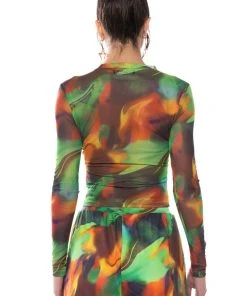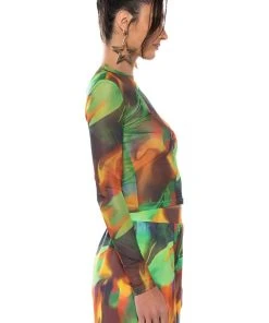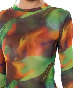 The AKIRA Label All Natural Mesh Long Sleeve is a long sleeved, sheer mesh top complete with an abstract graphic print design, a mock neckline, and a waist-length cut. Pair with the coordinating AKIRA Label All Natural Wide Leg Pant to complete the look!