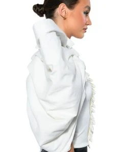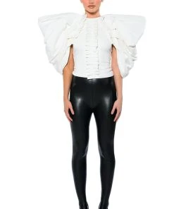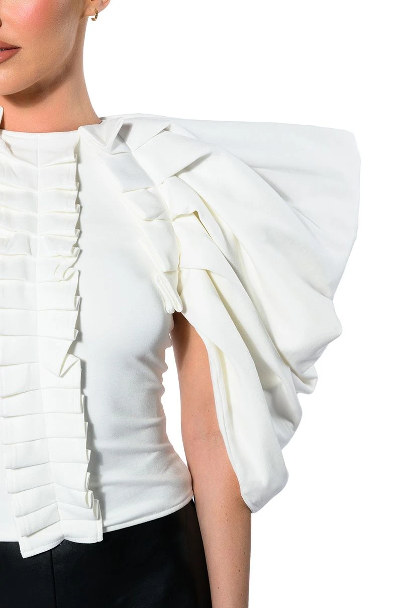 The AKIRA Label Annika Statement Sleeve Top is made from a soft, stretchy knit fabrication and features an inner tank with a high, rounded neckline, dramatic, reinforced statement sleeves, pleated column detailing, light polyester lining, and an exposed back zipper closure. Pair this piece with fitted trousers and pumps to really stand out from the crowd.