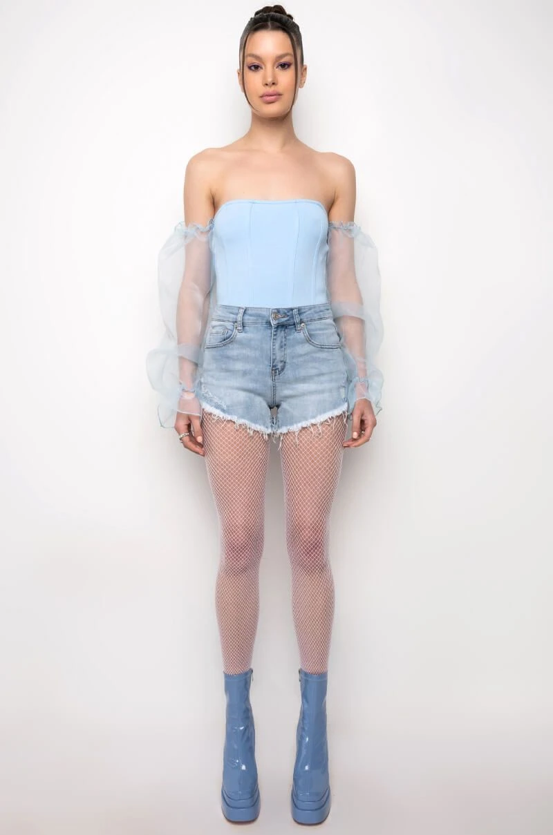 Snatch your waist and show off that booty in style with The AKIRA Label Flex Fit Extreme Stretch High Waisted Denim Shorts! These stretchy faded denim bottoms feature a curve-hugging construction, a high rise waist, a classic zip button closure, distressed detailing, and a raw hemline. Complete with a functional five pocket design, working belt loops, and silver metallic hardware. Style these with your favorite crop tops and sleek ankle booties for a casual moment that puts your sexy self front and center.