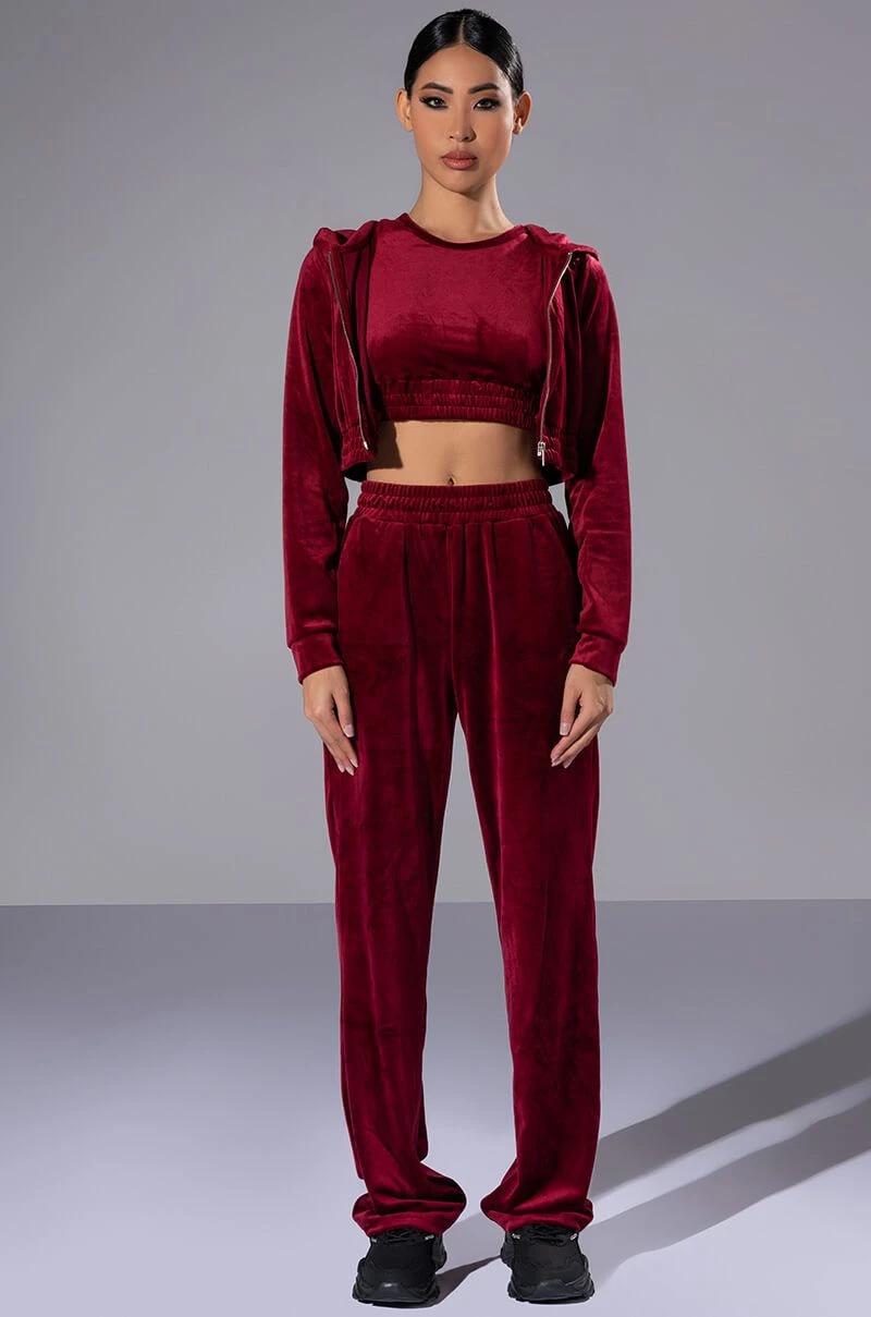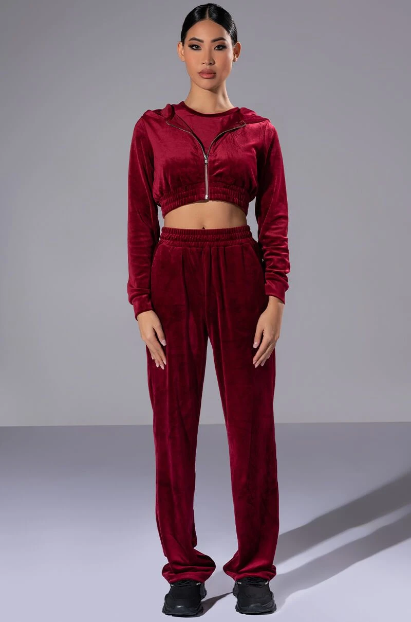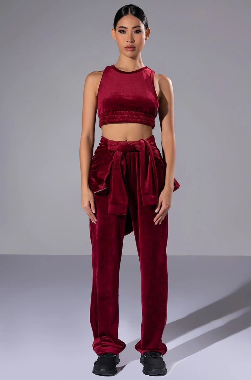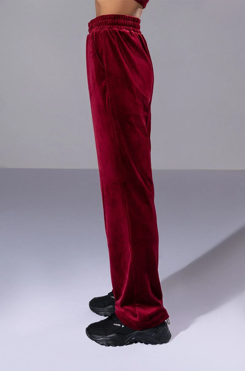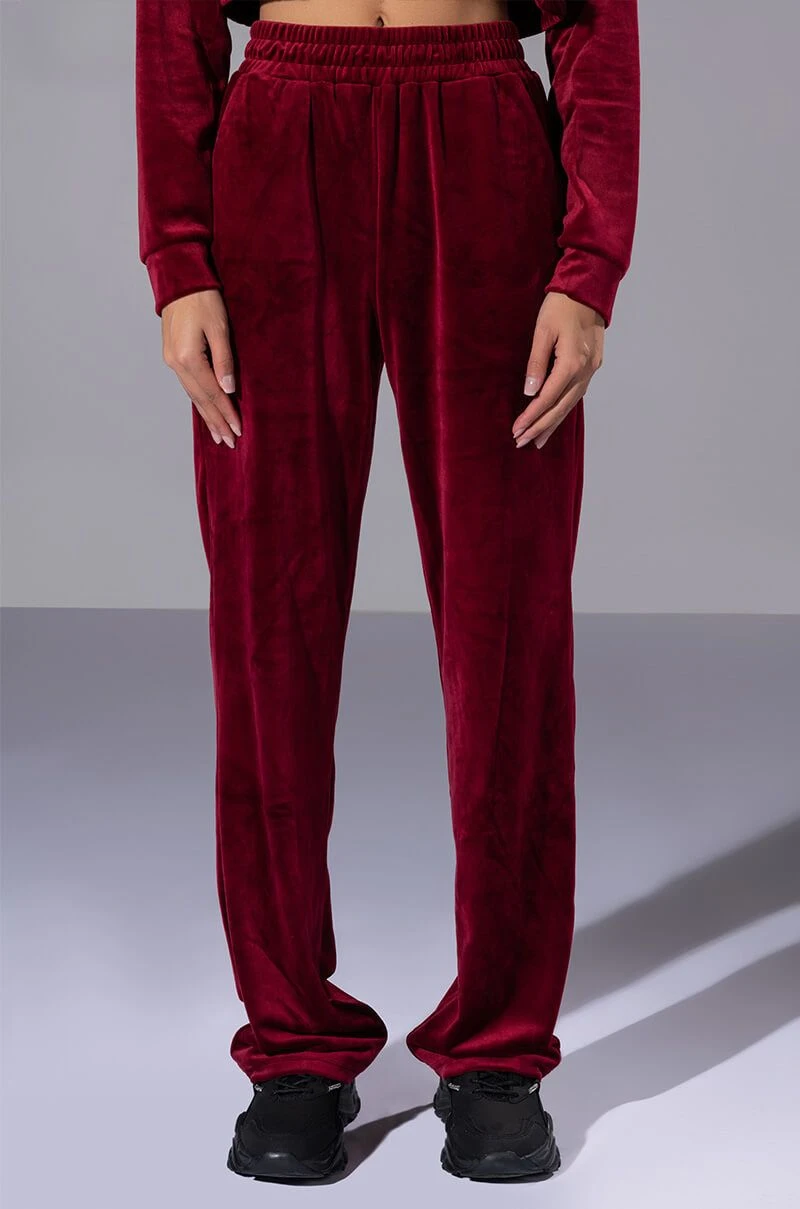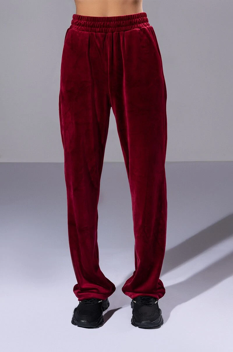 The AKIRA Label Gretchen Straight Fit Joggers is part of a quintessential athleisure set, and is made from a soft velour fabrication. It features a ribbed elastic waistband, straight leg silhouette, and a pull on fit. Pair this lush piece with the matching The AKIRA Label Gretchen Zip Up Cropped Hoodie, Gretchen Cropped Tank Top, and chunky sneakers to complete your fetch look.