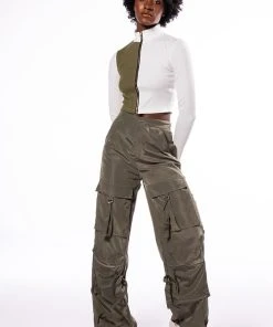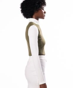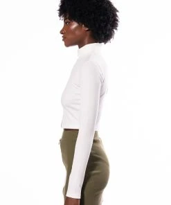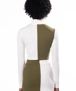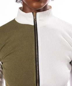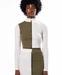 Sweet as cream, The AKIRA Label Half N Half Zipper Top is made from a soft ribbed knit fabrication and features a mock neckline, long sleeves, a colorblock panel, a cropped silhouette, and a front zipper closure. Pair this piece with the coordinating AKIRA Label Half N Half Zipper Skirt and booties to complete your look.