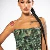 The AKIRA Label Leavin On A Jet Plane Sleeveless Rhinestone Tank is made from a stretchy ribbed knit fabrication and features a mock neckline, a sleeveless silhouette, sequin and rhinestone fringe detailing, and a cropped silhouette.
