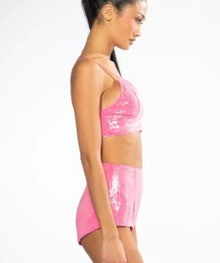 The AKIRA Label Leavin On A Jet Plane Sleeveless Rhinestone Tank is made from a stretchy ribbed knit fabrication and features a mock neckline, a sleeveless silhouette, sequin and rhinestone fringe detailing, and a cropped silhouette.