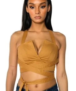 The AKIRA Label Londyn Cross Back Wrap Tank Top is made from a soft, structured base fabric and features a unique wrap front design, adjustable thick tank straps, and a V-cut neckline. Complete with wrap-around waist straps, cross back straps, scrunched elastic at the back for a comfortable fit, and an exposed back zipper closure. Pair this cropped top with the coordinating bottoms, The AKIRA Label Londyn Wide Leg Trouser, for an unbeatable London look!