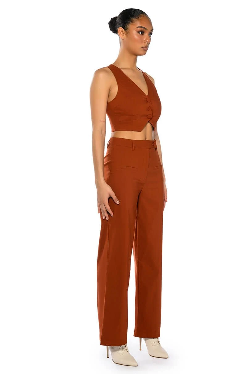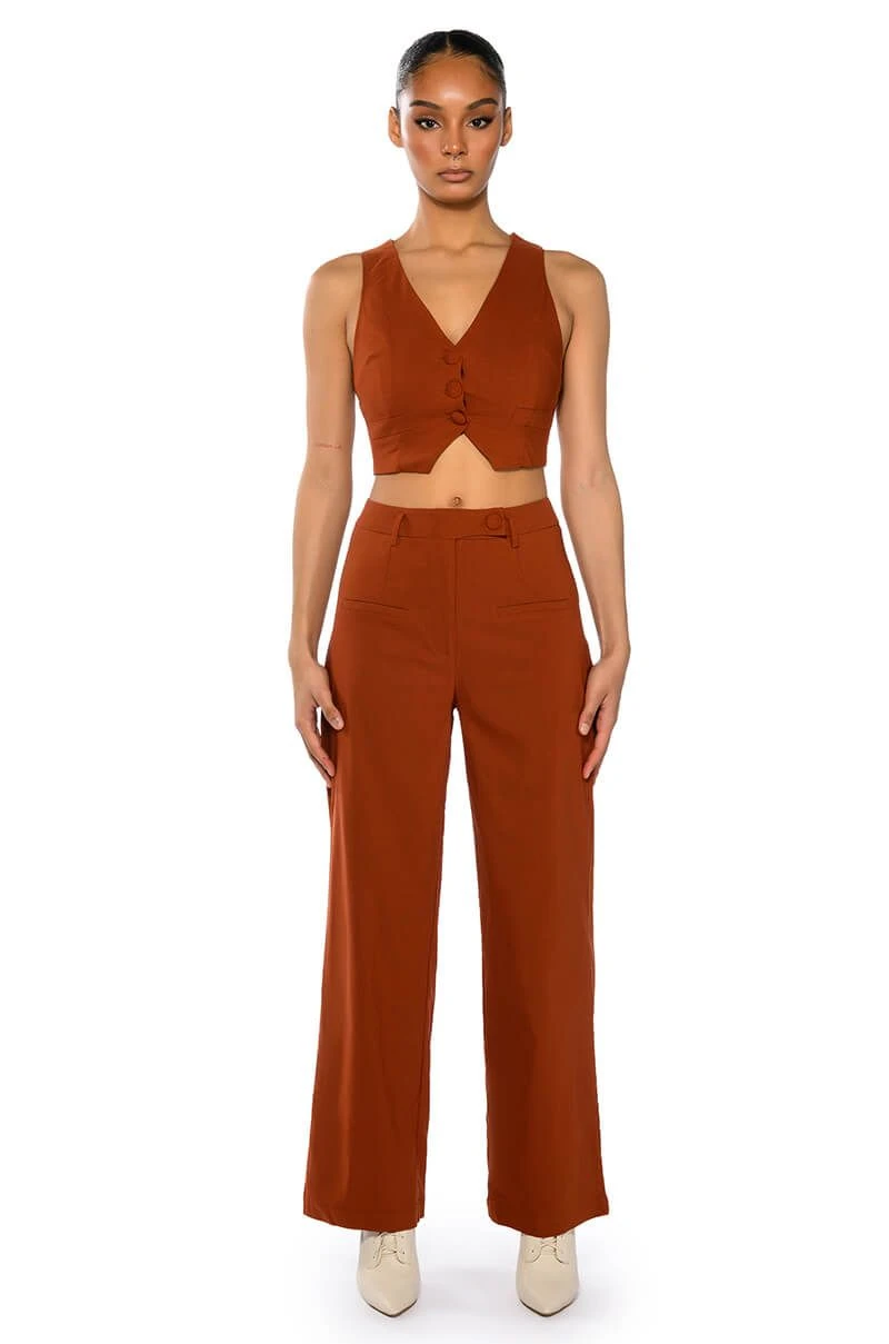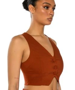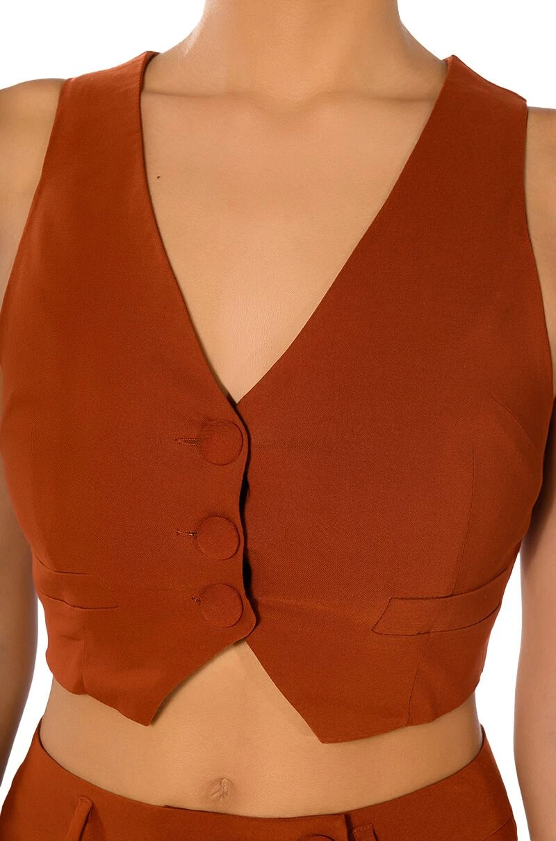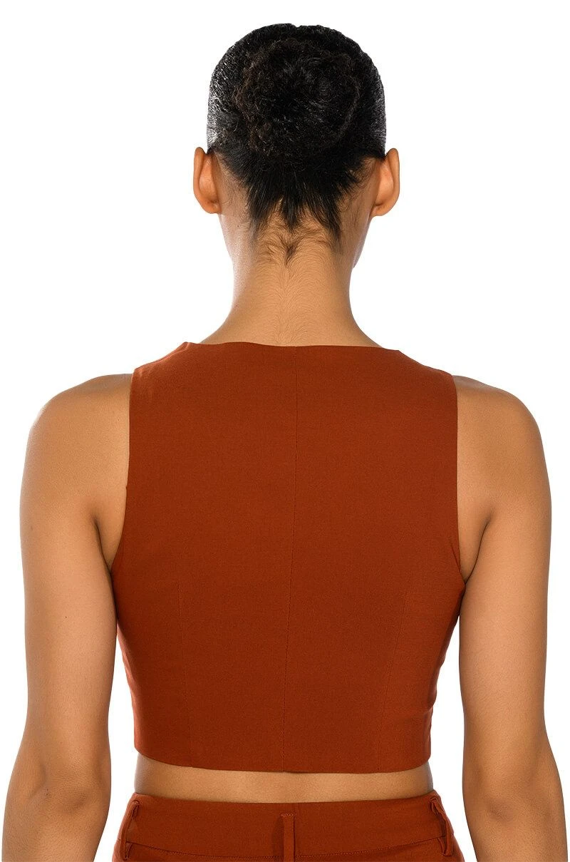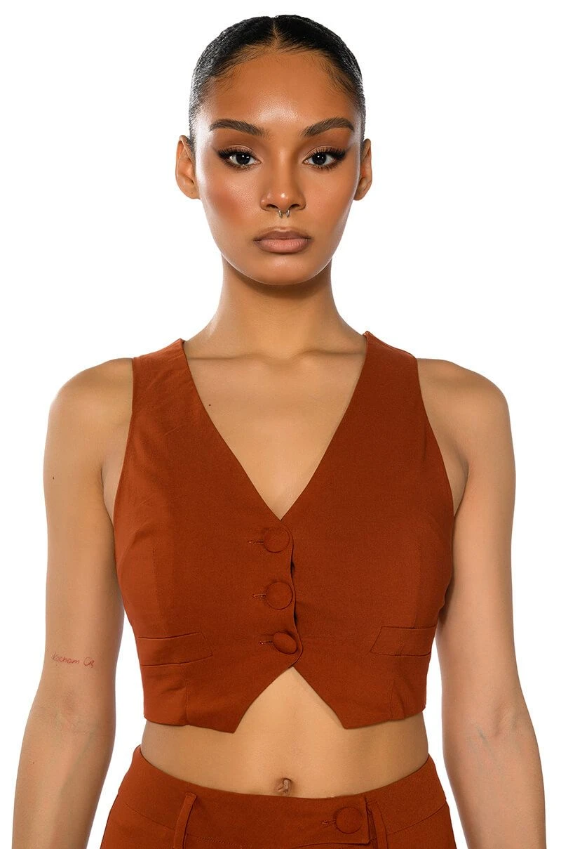 The AKIRA Label Most Likely To Dream Big is made from a smooth, lightweight fabrication and features a plunging neckline, a sleeveless silhouette, princess seam detailing, and a front button closure. Complete with pointed hems, a satin inner lining, and faux front pockets. Style this cropped piece with the matching AKIRA Label Most Likely To Dream Big High Waisted Pants to finish off your look.