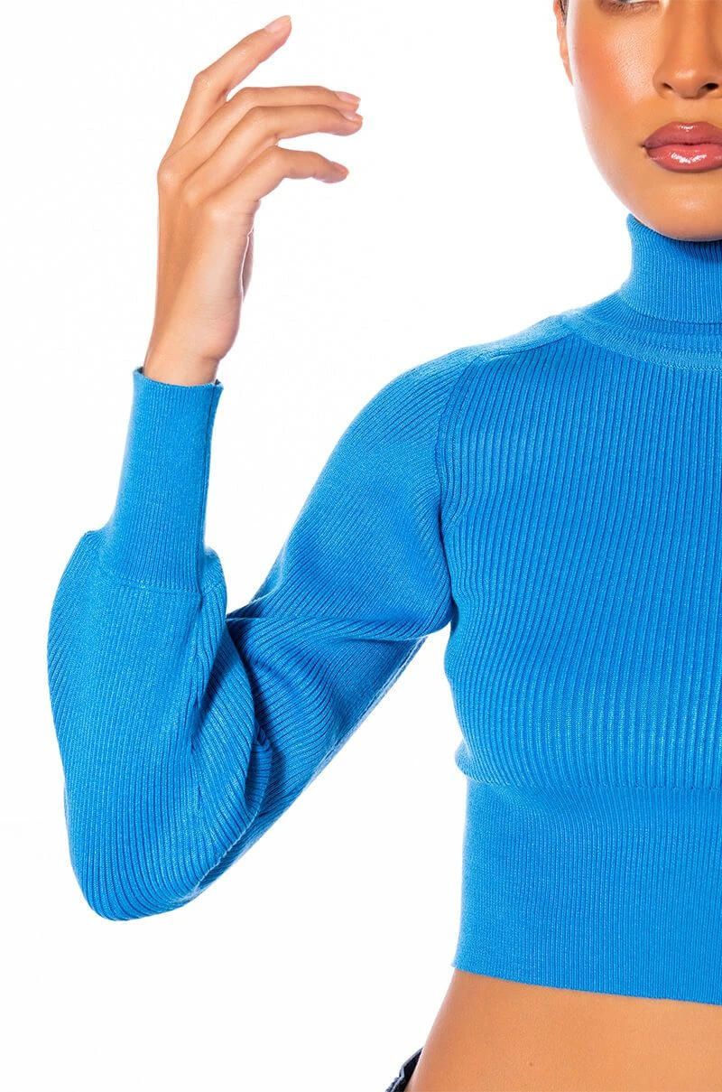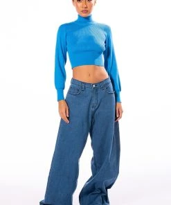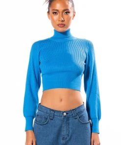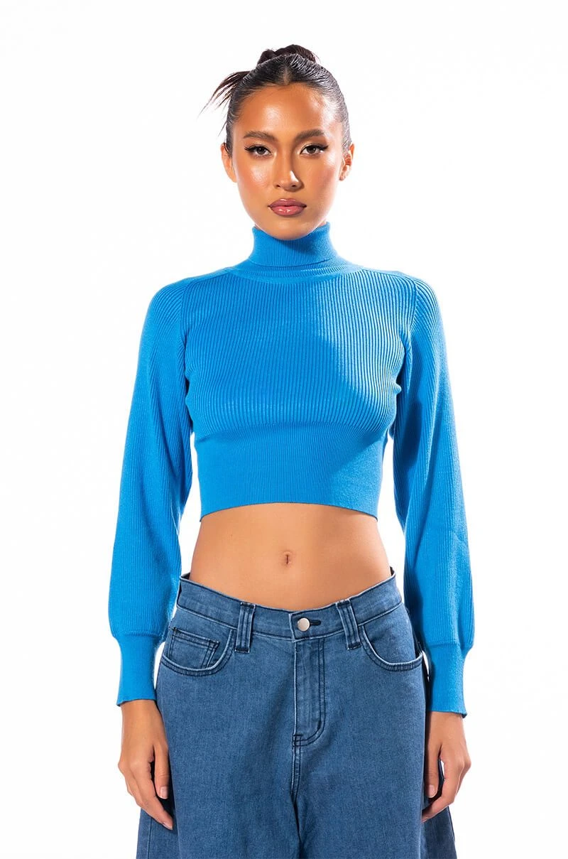 The AKIRA Label Sage Cropped Turtleneck Sweater is made from a soft and stretchy ribbed knit fabrication and features a turtleneck silhouette, empire waist stitching, long sleeves with wide cuffs, and a cropped length. Pair this cozy classic with wide leg jeans and booties to finish off your chic seasonal look.