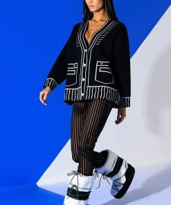Just a material girl in a material world… The AKIRA Label Sketchy Oversized Cardigan is an open front knit sweater featuring a long silhouette, a soft knit base, and a 2-D sketched design. Complete with long sleeves, faux 2-D ribbed knit hems, and faux drawn-on pockets. Style this meta cardigan with a cropped tank, straight leg pants, and ankle booties!