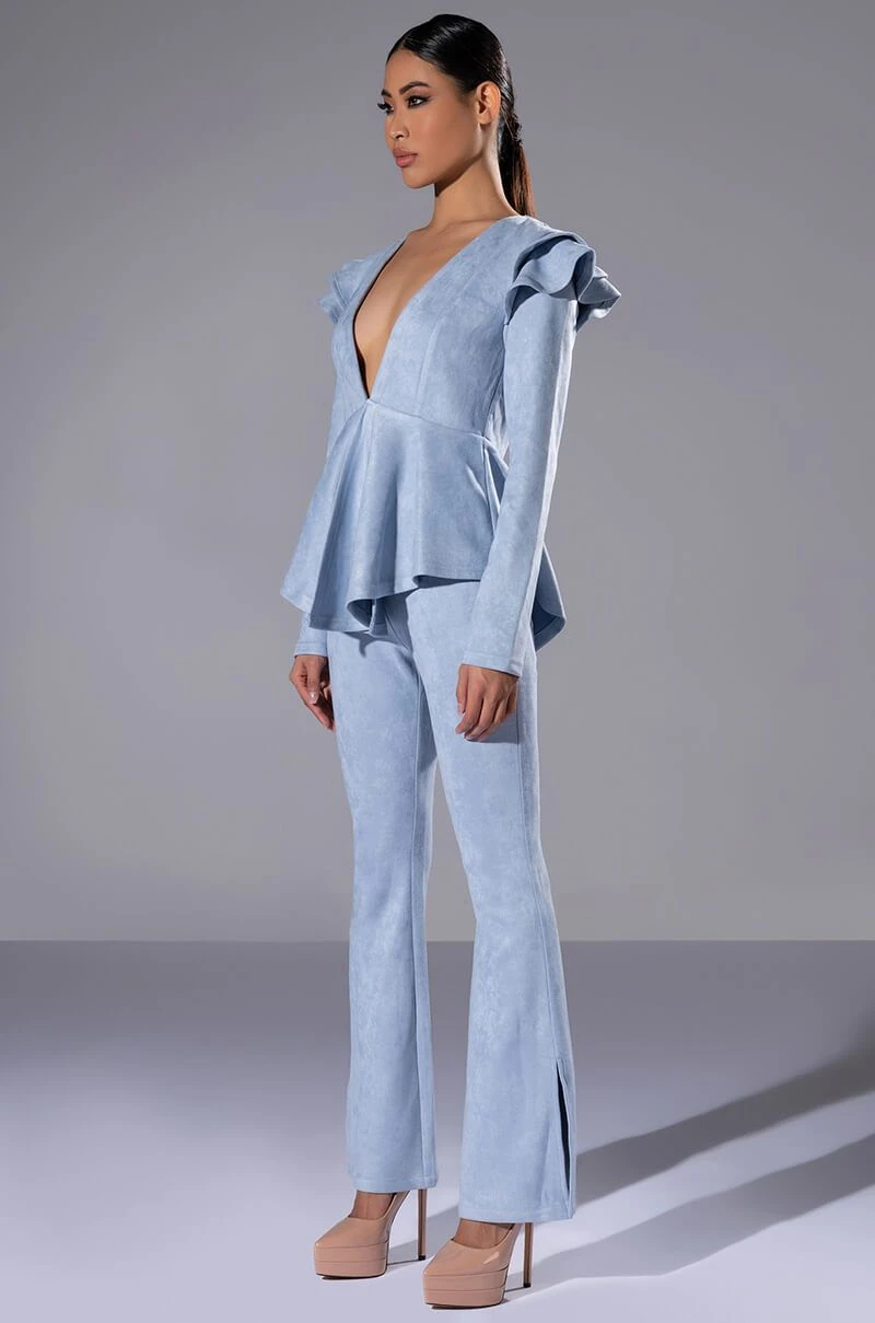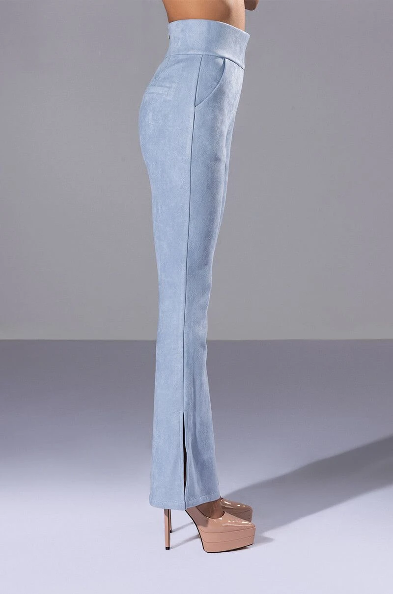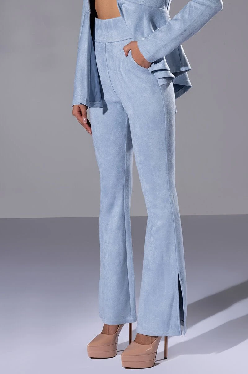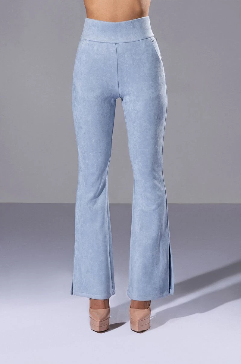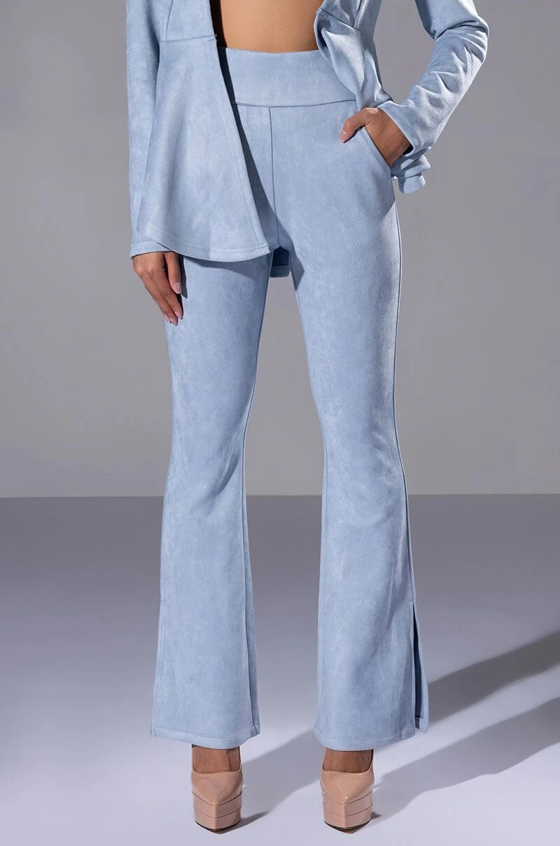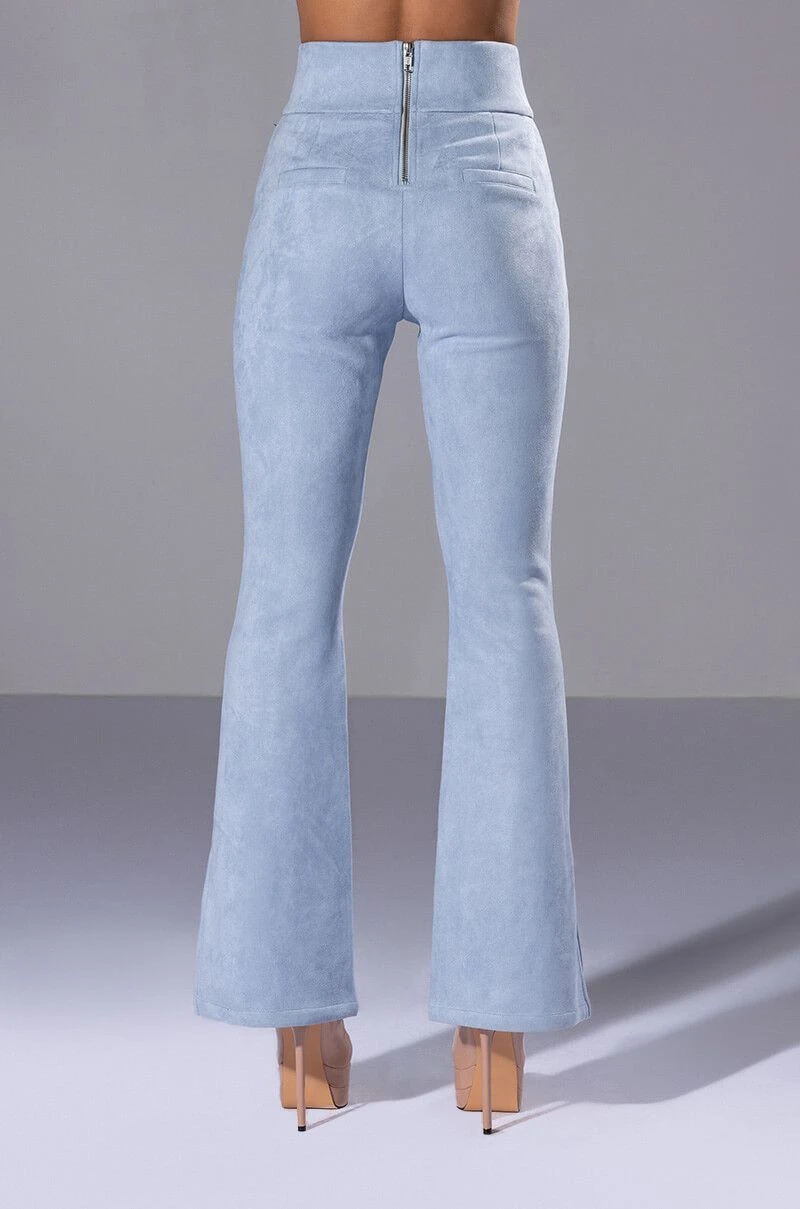 All I want for Christmas is The AKIRA Label Suede Big Booty Pants! These bottoms feature a soft faux suede fabrication, slant front pockets, mock back pockets, a high rise waistline, and elasticized waistband. Complete with flared hems with outer ankle slits and a back zipper closure. Complete your look with the coordinating The AKIRA Label Suede Ruffle Blazer, booties, and a beret!