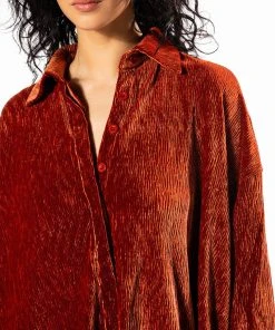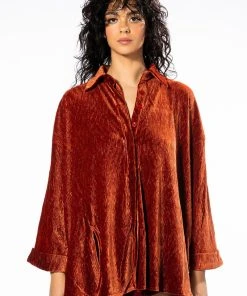 Talk flirty to me. The AKIRA Label Sweet Talk Button Up features a textured velvet fabrication, a collared neckline, long cuffed sleeves, side slit detailing, and a button up front closure. Complete with an oversized silhouette. Pair this piece with the matching AKIRA Label Sweet Talk Shorts to complete your look!