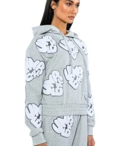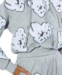 The AKIRA Label Unreal Hoodie With Patches is made from a cozy sweatshirt fabrication and features a drawstring hood, long sleeves with ribbed elastic wrists, and a shirred elastic hem. Complete with scattered “Unreal” fuzzy text patch detailing. Pair this piece with the matching AKIRA Label Unreal Jogger With Patches to finish off your graphic athleisure look.