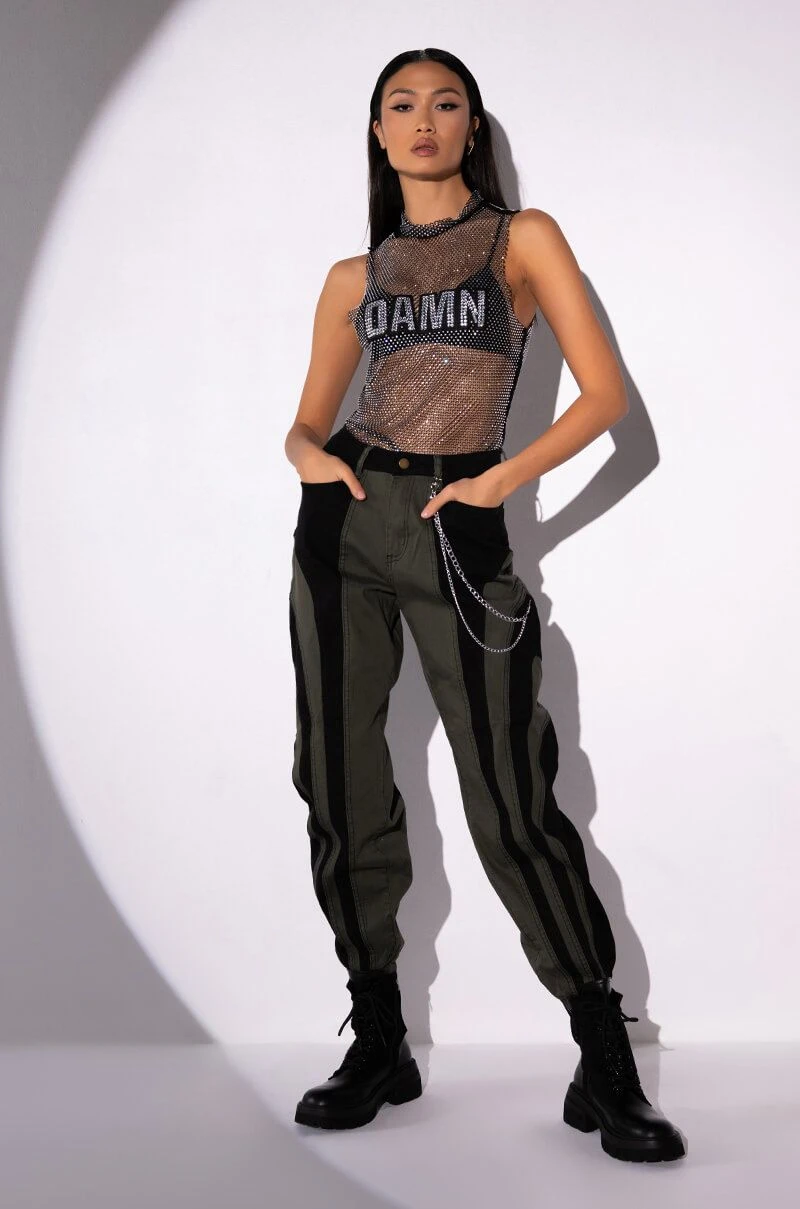 WONKA CHAIN DETAIL COLOR BLOCKED DENIM PANT
