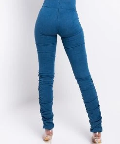 You know you love us! The AKIRA LABEL X.O. High Rise Stacked Denim comes in a medium blue denim wash, and features ruched legs, high rise waist, and a hidden back zipper. Style these jeans with your favorite sweater and a pair of stiletto booties for a comfy chic look!